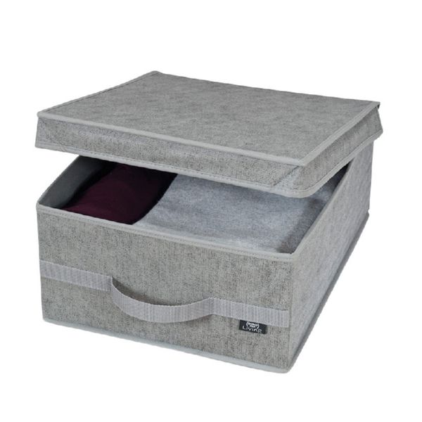 Polipropileno no tejido de aspecto textil. Material lavable y transpirable. Ventana para ver el contenido interior. Guardarropa M. 35x45xh.18 cm.