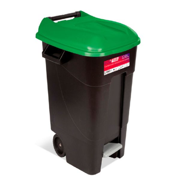 CONTENEDOR NEGRO CON PEDAL 120L-TAPA VE