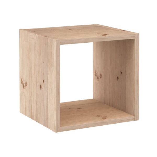 Madera pino natural sin barnizar. Grosor 16/18 mm. Módulos combinables. Modulo cuadrado 36x33xh.36 cm.